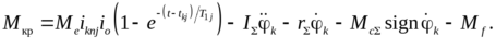 Выражение (2.9) адекватно описывает процесс лишь при полностью включенном сцеплении. В момент включения сцепления в выражении (2.7) необходимо в числителе и знаменателе эффективный момент домножить на экспоненциально возрастающую во времени до единицы функцию, что приводит к резкому изменению , а это, в свою очередь, лишает смысла введение этого параметра в уравнение.