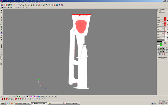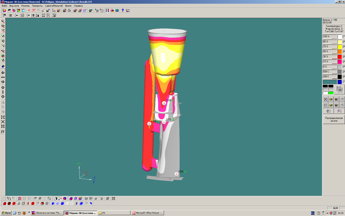 Мираж-3D - постпроцессор системы СКМ ЛП "ПолигонСофт". С помощью модуля "Мираж-3D" можно просматривать все расчетные поля в любой момент времени в любом месте отливки.