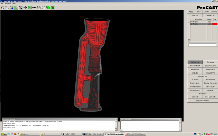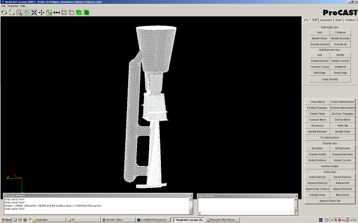 Чтение CAD-моделей, проверка и, при необходимости, «лечение» импортированной геометрии осуществляются с помощью тетрагонального генератора сетки MeshCAST. В его состав также включен генератор оболочек, предназначенный для моделирования литья по выплавляемым моделям. Помимо собственных файлов системы генератор способен распознавать следующие форматы: