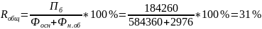 Рентабельность общая Rобщ по балансовой прибыли показывает сколько денежных единиц прибыли получено предприятием с единицы стоимости активов (основных фондов и нормируемых оборотных средств).