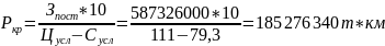 где Ркр – величина транспортной работы в т*км при которой проект полностью окупается;