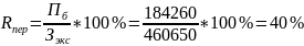 Пб = Д - Зэкс = 644 910 – 460 650 = 184 260 тыс. руб.