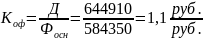Фондоотдача Коф, показывает размер дохода на один рубль основных фондов: