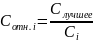 Указанные характеристики имеют различные единицы измерения. Поэтому их абсолютные натуральные показатели надо представить в условных относительных единицах по единичной масштабной шкале. Для этого по каждому показателю выберется наилучшее из всех значение и принимается за единицу. Остальные значения представлены относительными величинами, которые будут отображать степень ухудшения (отдаления) для данного показателя по сравнению с наилучшим и определяются по формуле