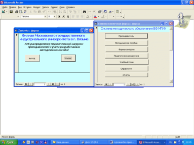 Рис. 3.4. Главный модуль «ZASTAVKA» и Главная кнопочная форма ПП распределения педагогической нагрузки преподавателей и учета разработанных методических пособий в вузе