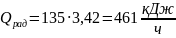 Qосв = 3600·4·0,064·0,35·1,3= 419 кДж/ч