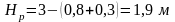 hраб – уровень (высота) рабочей поверхности, hраб = 0,8 м;