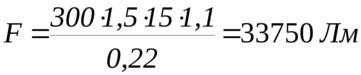 Для определения количества светильников определим световой поток, падающий на поверхность по формуле: