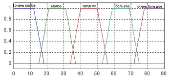 тепень принадлежности четких значений термам задается с помощью функций принадлежности (в нашем случае эти функции имеют форму трапеции).