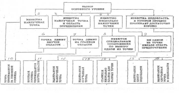 отмечены наилучшие условия, известные из априорной информации. Чтобы правильно выбрать основной уровень следует пользоваться блок-схемой рис. 4.