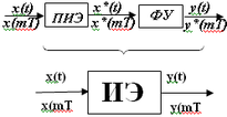 Итак, реальный ИЭ, в котором импульсы имеют произвольную форму, следовательно, каждый ИЭ нуждается в специальном описании, заменяется совокупностью (фиктивной, существующей только в математических конструкциях) ПИЭ, который одинаков для любых реальных ИЭ, и ФУ, в котором и отражаются различия в ИЭ. Однако, ФУ это непрерывное, а не импульсное устройство, и изучать его существенно проще методы линейной ТАР.