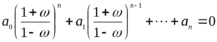 В плоскости переменной ω окружность единичного радиуса в плоскости Z преобразовалась в левую полуплоскость. Умножим обе области характеристического уравнения (3) на (1-ω)n и получим