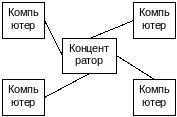высокие требования, предъявляемые к концентратору. Он должен быть достаточно мощным (по пропускной способности) для обслуживания всех компьютеров сети. Отсюда и высокая стоимость концентратора;