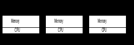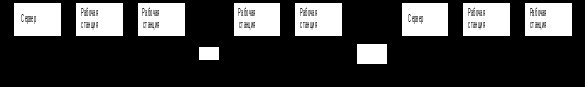 магистралью (рис.4). Это традиционная локальная сеть, состоящая из несколькихкомпьютеров, причем каждый компьютер имеет свою память. Объединение происходит не с целью совместных вычислений, а с целью разделения каких-то данных и дорогостоящих ресурсов. Высокие скорости передачи данных здесь не обязательны.