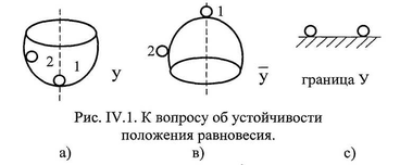 Для пояснения смысла, понятия устойчивости положения равновесия системы, удобно воспользоваться следующим примером. Пусть имеется некоторая чаша, поставленная дном вниз (рис. IV. 1.а)Н
