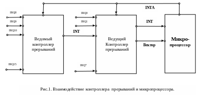 Контроллер прерываний от внешних устройств в архитектуре ЭВМ семейства INTEL. Программно-аппаратное взаимодействие контроллера прерываний и микропроцессора.