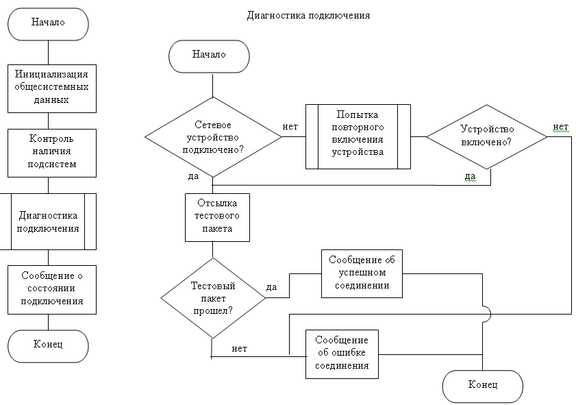 В-третьих, требуются алгоритмы диагностики сетевых подключений, позволяющие определить проблему соединения и сформировать дальнейшую конфигурацию для исправления ошибок подключения. Для этого были выбраны стандартные технологии проверки соединения путем отсылки тестовых пакетов на удаленный сервер. Это – функции ping и tracer.