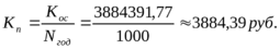 2) стоимость основных фондов (п.4.2.4) – Кос=3848514,77 руб.;