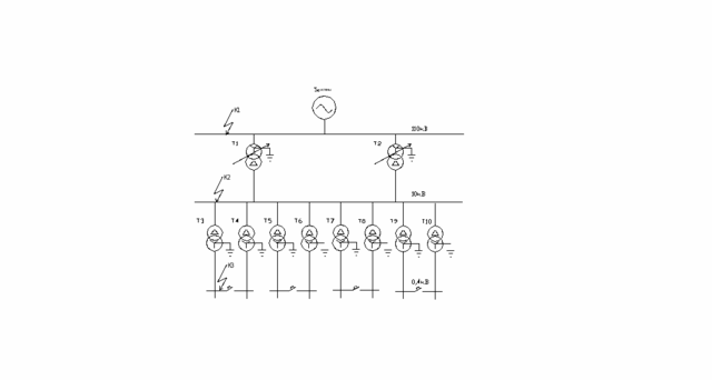 Проведем расчет токов короткого замыкания в точках К-1— шины 110кВ ГПП, К-2— шины 10кВ ГПП, К-3— шины 10кВ ТП-37 (т.к. она расположена наиболее близко к ГПП, а значит ток КЗ наибольший), К-4— шины 0,4кВ ТП-37