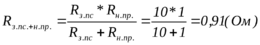Нефтепровод является естественным заземлителем и подстанции 35/10 кВ. Трансформатор ЭОМНИ находится на ПС 35/10 кВ, вторичная обмотка трансформатора ЭОМНИ - 4200/10 должна быть связана с контуром заземлителя подстанции, заземлённый конец вторичной обмотки трансформатора ЭОМНИ соединён со средней частью нефтепровода и стальными трубами электрообогревателей. Если учесть сопротивление растеканию с технологического оборудования по концам трубопровода, который имеет с ними металлическую связь, то сопротивление растеканию ожидается ещё более низкое. Это мнение может быть подтверждено измерениями в натуральных условиях. Общее сопротивление растеканию заземлителя ПС 35/10 кВ, с учётом искусственного заземлителя ПС, R3 ПС=10 Ом и естественного заземлителя, каким является нефтепровод Кн. пр.=1 Ом равно: