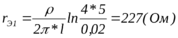= 1000(Ом*м) сопротивление растеканию одного электрода длинной 5 м равно: