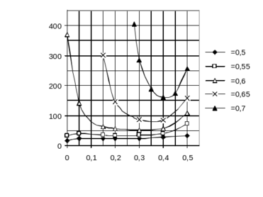 в узких пределах 0,5÷0,6 существует достаточно широкая область изменения величины
