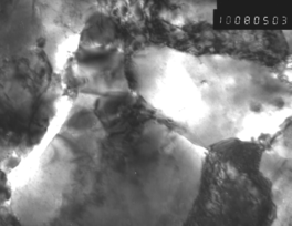 Исследования, выполненные с применением просвечивающей электронной микроскопии (рис. 6), показали, что структура материала, полученного из композиции №1, представляет собой зерна матричного металла, размерами 150 – 300 нм, с расположенными по границам зерен включениями