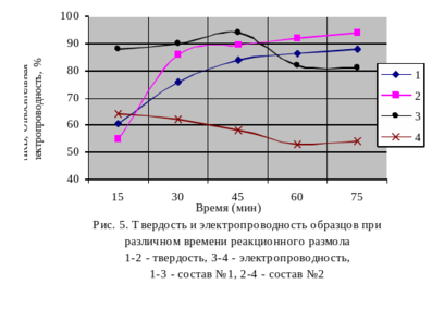 В композиции №2, не содержащей внутреннего окислителя и не прошедшей термическую обработку, количество растворенного алюминия в процессе реакционного размола увеличивается и это приводит к снижению электропроводности.
