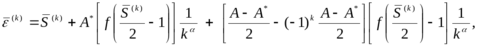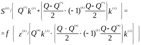 (S(k) и ε(k) – напряжения и деформации в k – м полуцикле нагружения, отсчитываемые от точки разгрузки, ƒ – связывает напряжения и деформации при статическом нагружении, α – коэффициент материала); или уточняющего соотношения, распространенного Г.В. Москвитиным на более общие случае малоциклового нагружения