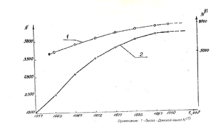 Цикл работы ДВ двухкамерного шлюза включает следующие этапы: 1) наполнение верхний камеры до рабочего уровня; 2) перепуск воды из верхний камеры в нижнюю до выравнивания уровней воды; 3) опорожнение нижней камеры при одновременном наполнение верхний камеры до расчетного уровня (рис. 2.). Среднее число циклов слитых призм (число циклов наполнения и опорожнение шлюза) канала им. Москвы составляет 3800 - 4000 в год, а одного из Волгоградских шлюзов - 8000-12000 в навигационный период (рис. 3).