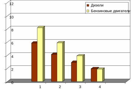 Результаты этой оценки, представленные на рис. 10, показывают, что ущерб от бензиновых двигателей для норм экологических классов 1, 2 и 3 хорошо коррелируется с ущербом от дизелей, оставаясь на 30…40% выше, чем у последних, что, принимая во внимание экономические аспекты эксплуатации АТС с бензиновыми двигателями, целесообразно. При введении в действие норм экологического класса 4 ущерб от дизелей и бензиновых двигателей на единицу полезной работы будет практически одинаков.