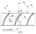 Рис. 35. Модель для расчета аэродинамической неуравновешенности: а) компрессорной решетки б) турбиной решетки