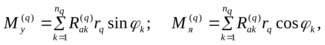 – радиус средней окружности газового тракта. Проекции составляющей по i-й форме изгибных колебаний ротора, определяемые неуравновешенными аэродинамическими силами и моментами, имеют вид: