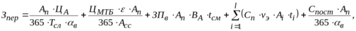 где Ап — число автобусов на маршруте в часы пик; ЦА — средняя цена автобуса, руб.; Тсл — расчётный срок службы автобуса, лет; αв — коэффициент выпуска линию; ЦМТБ — балансовая стоимость основных средств материально-технической базы для содержания автобусов, руб.; ε — коэффициент, учитывающий изношенность основных производственных средств и норму амортизации в долях единицы; Асс — среднесписочная численность ПС, ед.; ЗПв — среднечасовая заработная плата водителя с учётом надбавок, доплат, премий и других выплат, руб.; ВА — число водителей в расчёте на единицу ПС, чел.; tсм — средняя продолжительность смены водителя, ч; Сп — переменные на 1 км пробега расходы на эксплуатацию автобуса данной вместимости, руб.; vэ —эксплуатационная скорость на маршруте, км/ч; i = 1… l — условный номер периода суток, в течение которого на маршруте эксплуатируется постоянное число единиц ПС; Аi —число автобусов на маршруте в период суток i; ti — продолжительность i-го периода суток, ч; Спост — постоянные на 1 день работы автобуса расходы, руб.