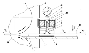 Для экспериментального исследования продольной устойчивости полос при прокатке на промышленном полосовом двухвалковом стане 260×400 с вертикальными калиброванными роликами без натяжения и с натяжением раската был разработан роликовый измеритель выпучивания (рис. 4).