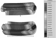 Рис. 12. Определение прогибов цилиндра методом конечного элемента