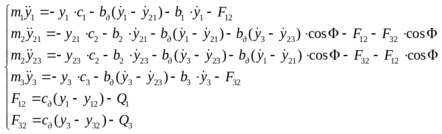 Уточненная модель (рис. 8) позволяет перейти к математической модели, которая с учетом принятых обозначений деформации цилиндров в радиальном направлении будет описываться системой уравнений