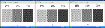 В процессе проведения исследований для оценки эффективности разрабатываемого метода - применения шкалы баланса по серому были использованы стандартные и предложенные в данной работе тест-объекты. На рис. 1 - 4 представлены разработанные тест объекты, учитывающие формы растровых точек, а также особенности визуальной оценки и программных методов расчета.