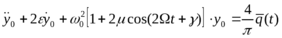 Уравнение (1) представляет собой уравнение Матье-Хилла с правой частью. При отсутствии выемки (