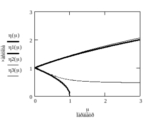- первому приближению (5). Верхние ветви границ областей неустойчивости соответствуют знаку + в выражениях (5) и (6). Увеличение параметра