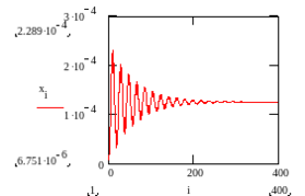 , без учета (рис.2) и с учетом выемки (рис.3). Результаты получены для печатного цилиндра печатной машины Speedmaster 102. Когда выемка в печатном цилиндре отсутствует, то после затухания переходных процессов прогиб при постоянной