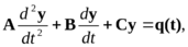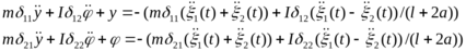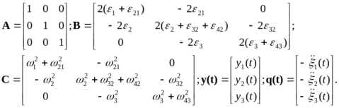 Рассмотрим колебания печатного аппарата ротационной полиграфической машины, которые происходят при случайных кинематических воздействиях, обусловленных дефектами или изношенностью подшипников. Эти колебания описываются системой уравнений (11). В матричном виде эта система уравнений запишется следующим образом