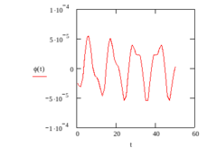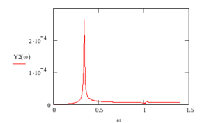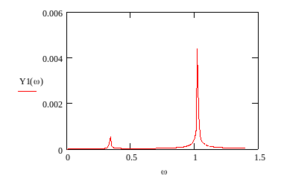 - параметр широкополосности. Несущая частота пропорциональна частоте вращения печатного цилиндра. При этом кратностью этой частоте можно моделировать определенные дефекты подшипников. Кинематическое воздействие со стороны правого подшипника является широкополосным случайным процессом со спектральной плотностью