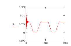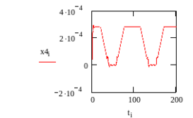 Результаты численного интегрирования систем уравнений (10) и (11) представлены на рис. 12–13 для параметров печатного аппарата печатной машины Speedmaster 102 при внешней нагрузке, представленной в виде последовательности трапецеидальных импульсов