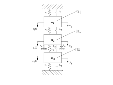 На рис.11 приняты следующие обозначения: ФЦ - формный , ОЦ – офсетный, ПЦ – печатный цилиндры. Колебания трехмассовой системы описываются следующей системой уравнений