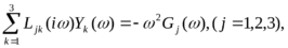 где Yj, и Gj -случайные спектры, удовлетворяющие условиям стохастической ортогональности. После подстановки (20) в уравнение (19) получаем следующую систему линейных алгебраических уравнений для спектров