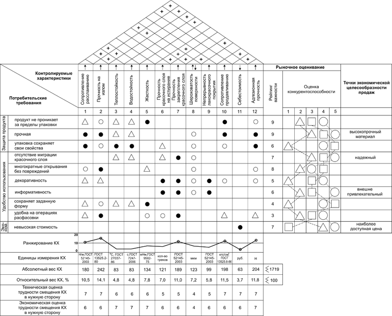 Для определения полноты укрывистости оттисков предложен алгоритм и разработан программный продукт [17]. Представлен широко используемый в зарубежной практике метод структурирования функции качества, позволяющий выполнить проектирование упаковочного комбинированного материала согласно потребительским требованиям и определить его конкурентоспособность на промышленном рынке, а также выявить экономически целесообразные точки продаж.