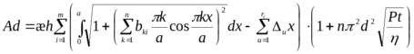 – коэффициенты Фурье; x – переменная интегрирования, (0≤ x≤ a); n – число пор на 1 см2 поверхности; d – диаметр поры; P – давление, под действием которого адгезив затекает в микропоры подложки; t –время контакта; – вязкость адгезива;