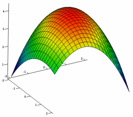 С геометрической точки зрения данное уравнение является уравнением эллиптического параболоида в окрестности точки максимума. Графическая интерпретация разработанной модели представлена на рисунке 2. График поверхности отклика (см. рис. 2) показывает, что значение адгезионной прочности, отложенное по оси аппликат, возрастает при приближении кодированных переменных х1 и х2 к нулевой точке и достигает своего наибольшего значения в нулевой точке, что соответствует значениям реальных переменных х1=80 % и х2 = 60 С.
