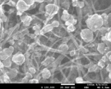 В качестве такого связующего в композиции использовался полианилин. При составлении композиций, содержащих чешуйки графенов или углеродные нанотрубки, на основе микроскопических исследований было установлено, что диспергирование композиции с помощью ультразвука приводит к образованию в объеме весьма разрозненных участков, содержащих нанотрубки или чешуйки графенов. В то же время, в объеме композиции после диспергирования в ней нанотрубок или чешуек графена наблюдалось большое количество пузырьков воздуха. Последнее отрицательно сказывается на электропроводности.